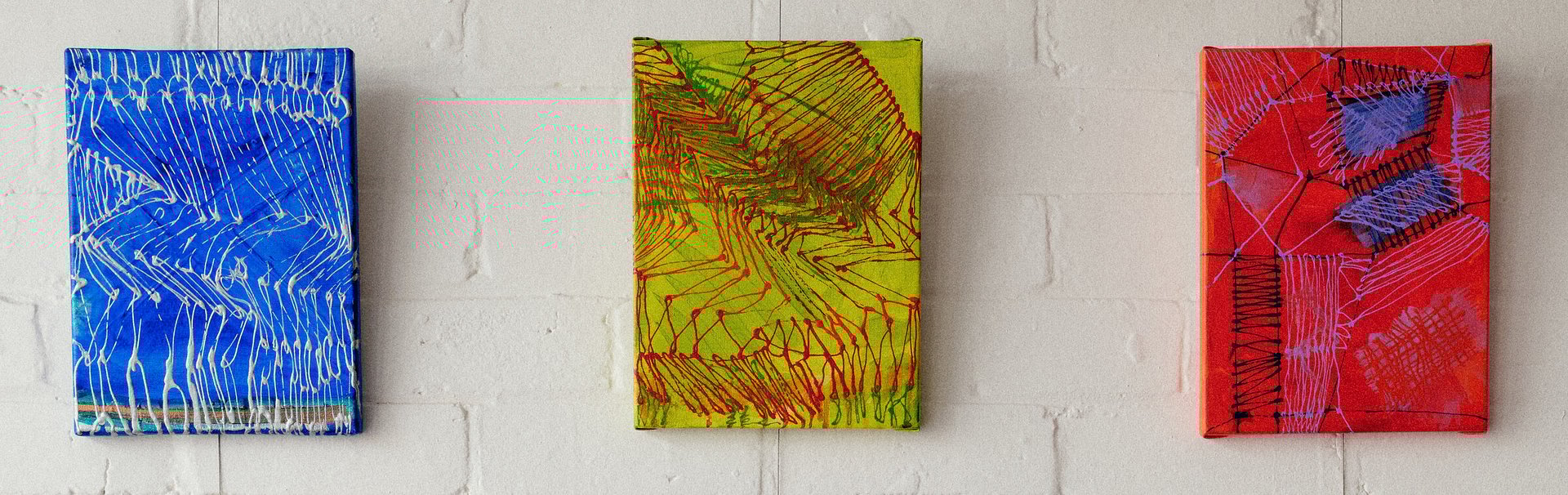 The subject matter in her paintings includes chairs, cages, nets, interiors and architecture. A continuous thread throughout her paintings & drawings is the dominant use of line and bold colour, with her hallmark striped deck-chair canvas frequently making an appearance.